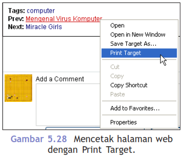 Selain dapat mencetak halaman web yang sedang dibuka, kamu juga diizinkan mencetak suatu halaman melalui link yang terdapat pada halaman situs yang kita buka. Perhatikan Gambar 5.28.